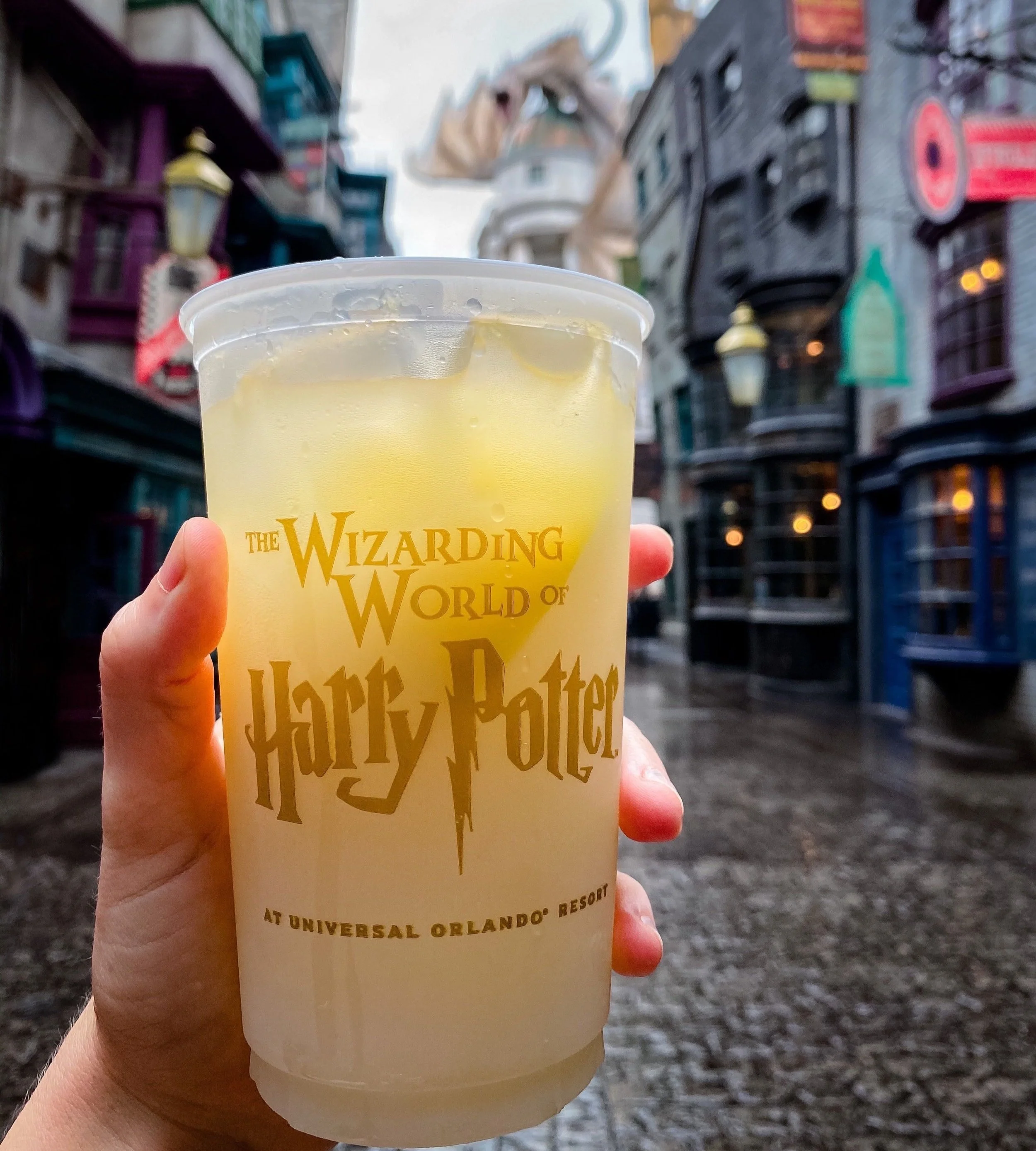 Iced lemonade with a large fresh-squeezed lemon. On a hot day in Diagon Alley this drink SLAPS.Price: $5.49