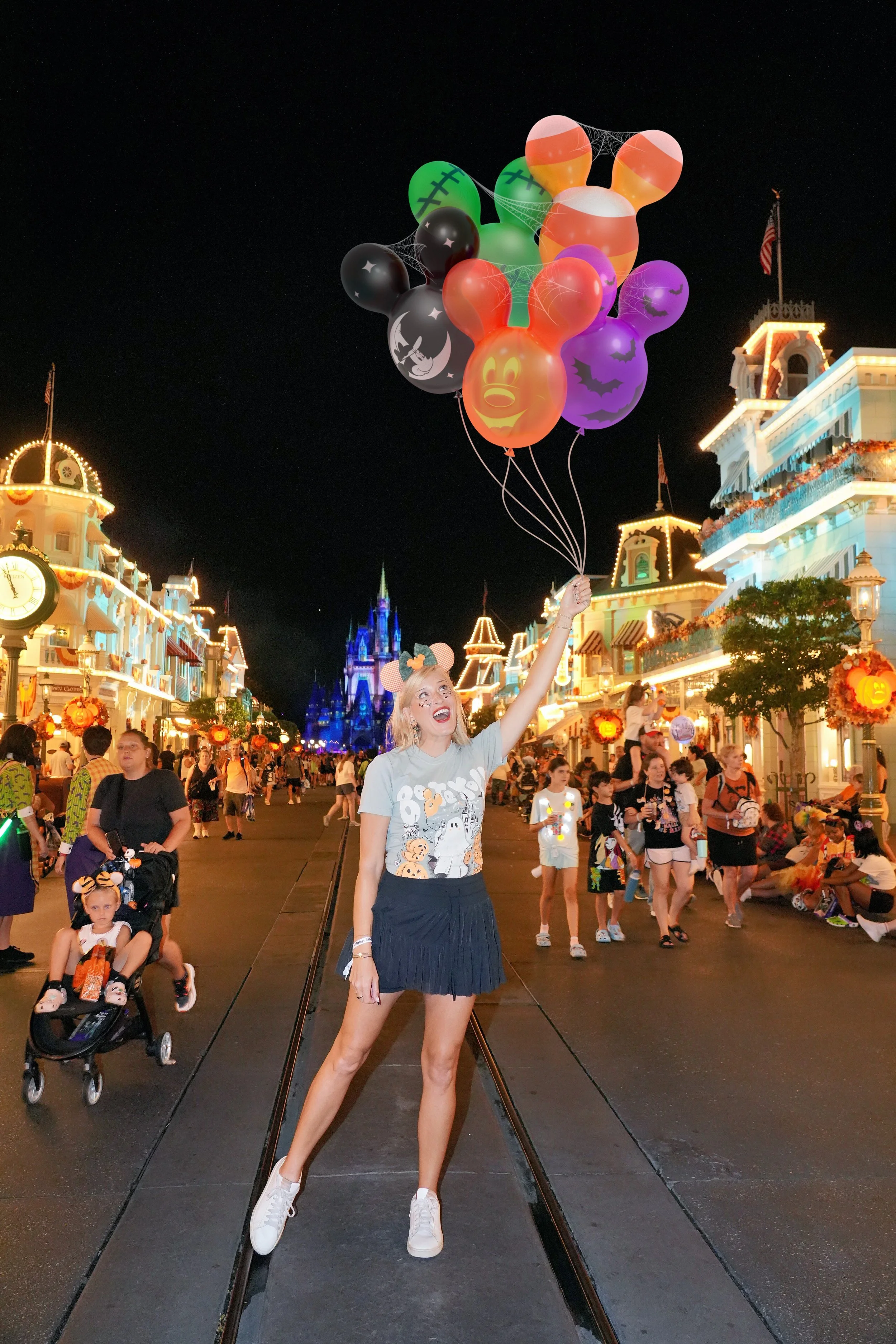 Make sure to the Disney PhotoPass photographer’s about the Halloween-themed Magic Shots. Select photographers can add halloween themed special effects to your photos during the MNSSHP!
