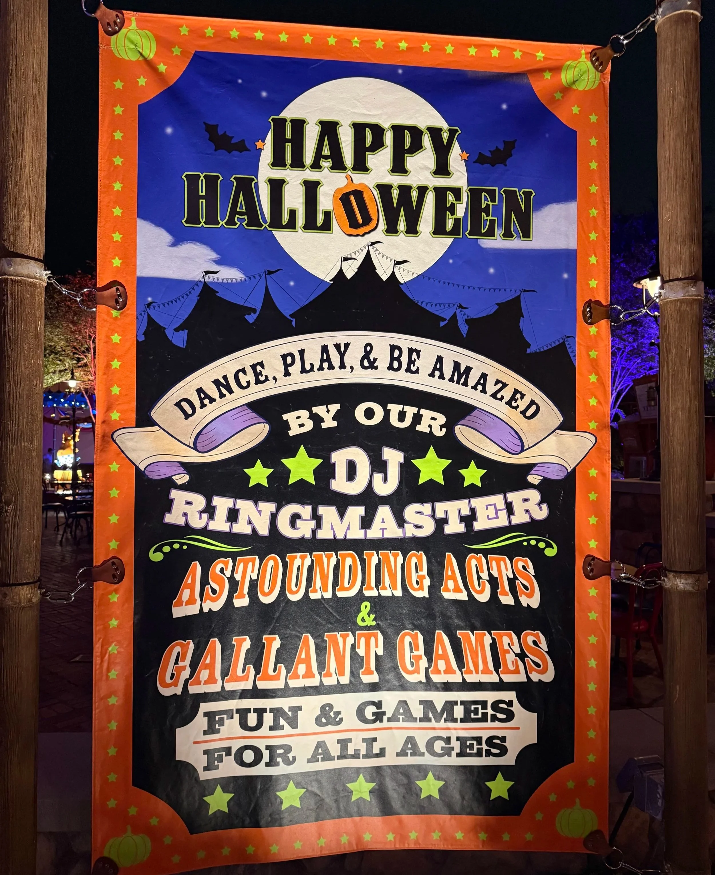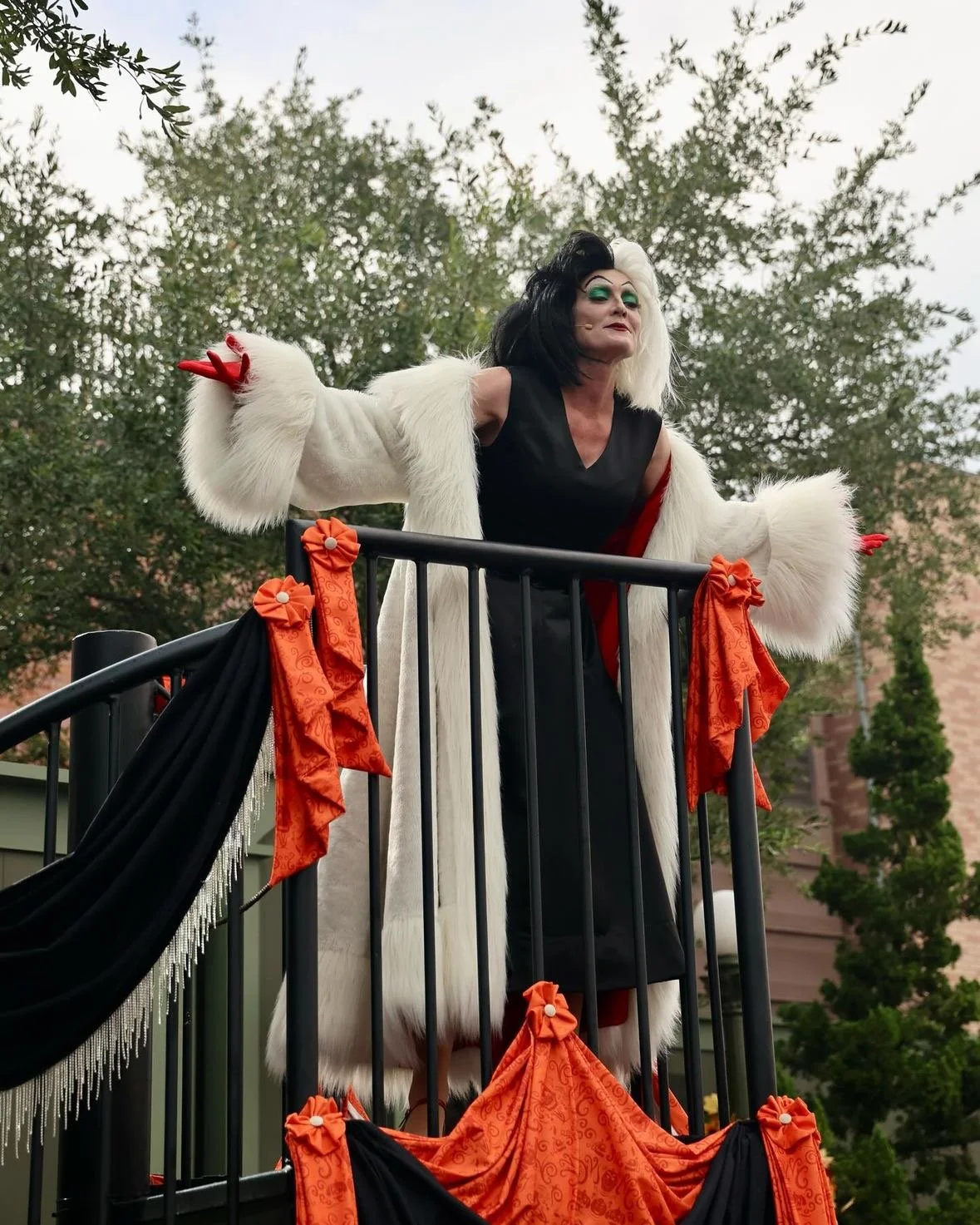 Once your MNSSHP ticket has been scanned, Cast Members will direct you toward Market Street. This path is where you can pick up your trick-or-treat bag. For 2025, you are greeted by a fun DJ, and then by Cruella de Vil and Mother Gothel who alternate.