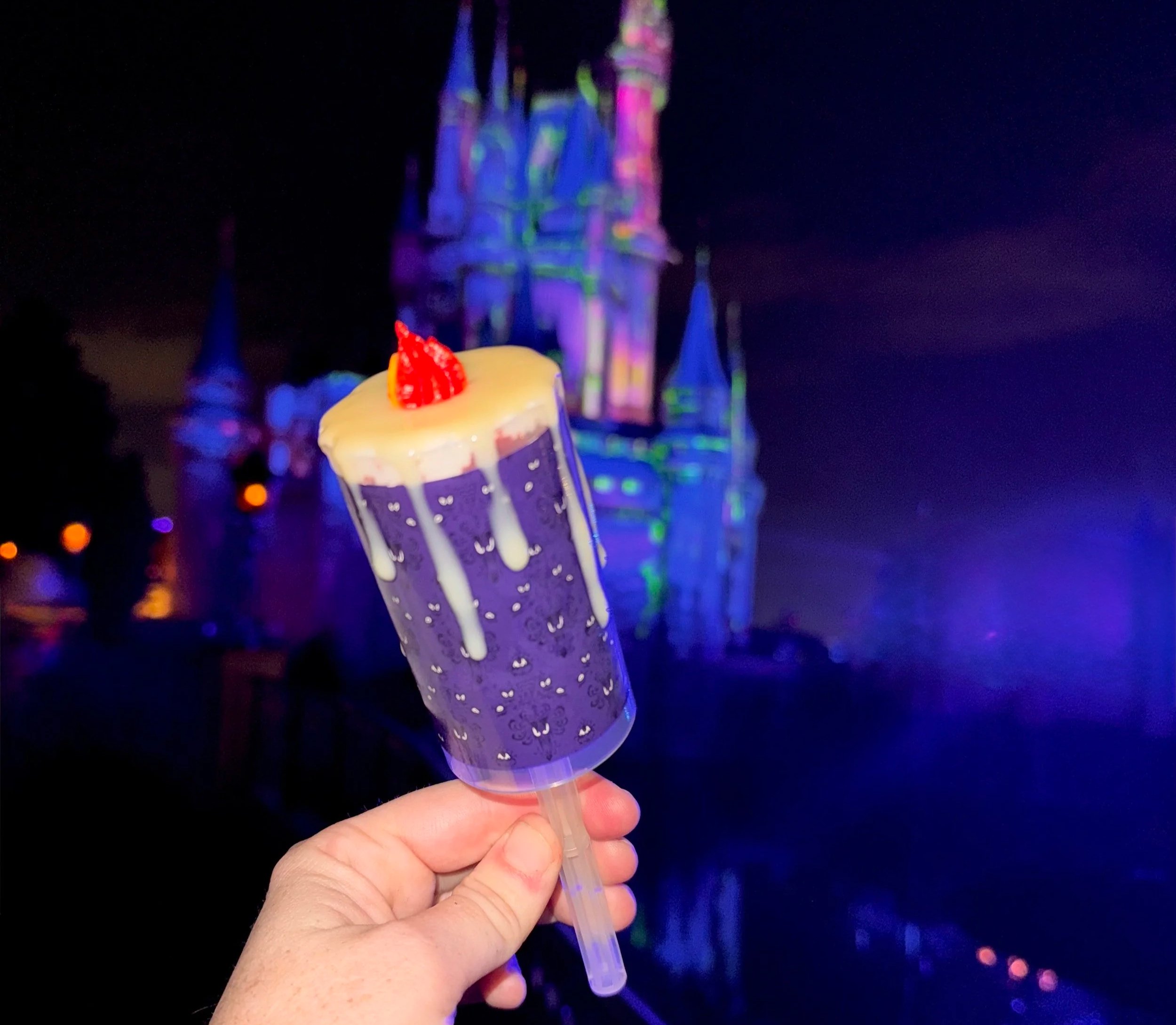 Yellow cake with raspberry filling topped with a chocolate piece (Available during Mickey’s Not-So-Scary Halloween Party only starting at 8:30 p.m.; mobile order not available)