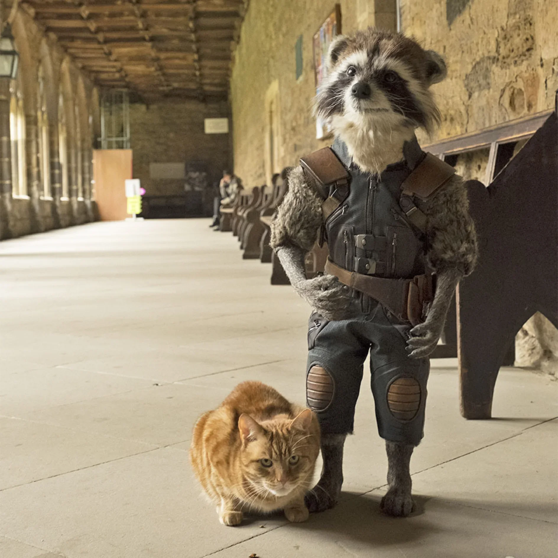 Fun Filming Fact: The crew and cast from Avengers: Endgame used a model of Rocket Racoon, voiced in editing by Bradley Cooper. Here you can see him meeting Badger, Dean Andrew Tremlett's cat in the Cloister.
