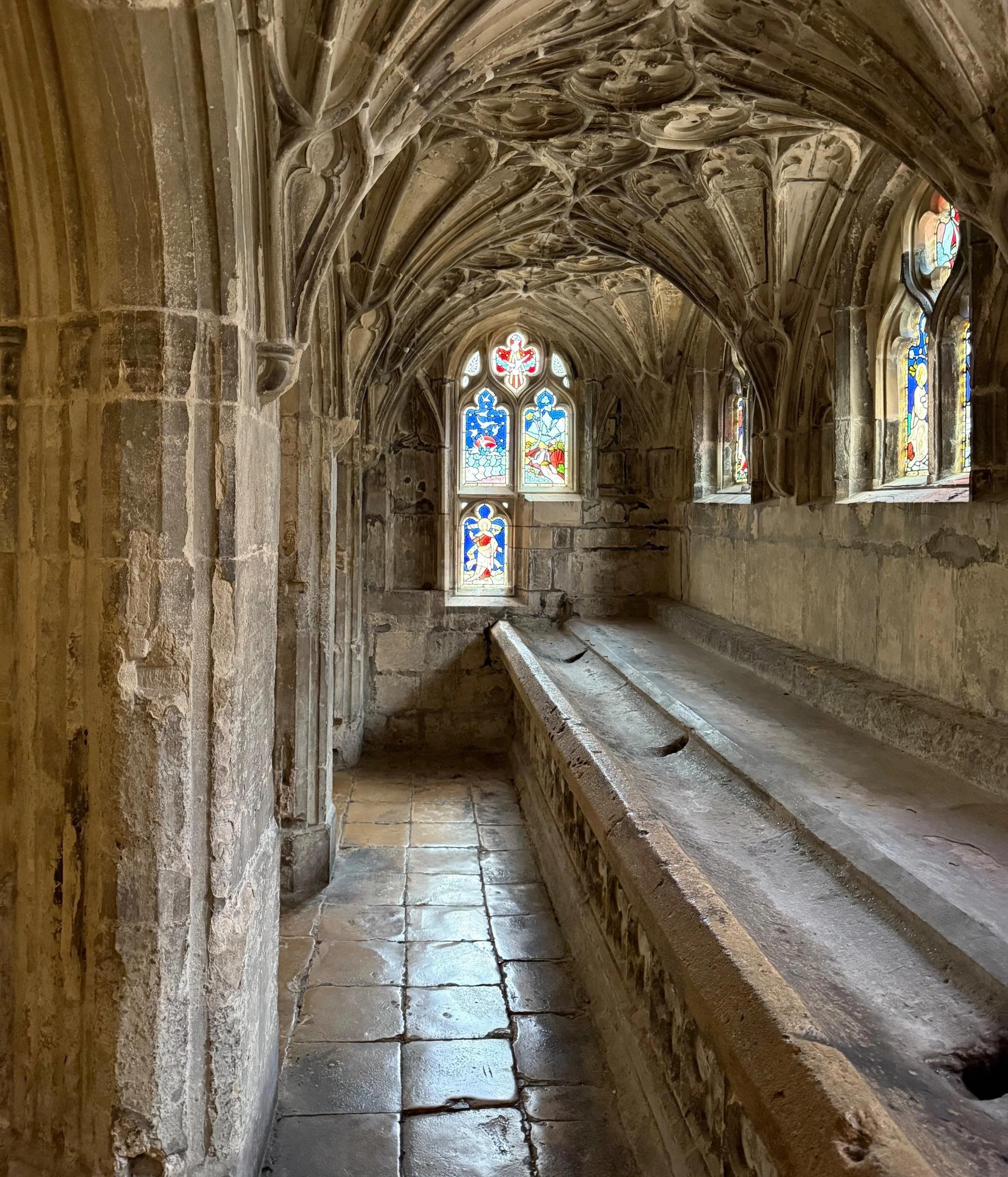 The hallways in the cloisters were used for various scenes, including where Harry and Ron hid from the troll in Harry Potter and the Philosopher’s Stone.