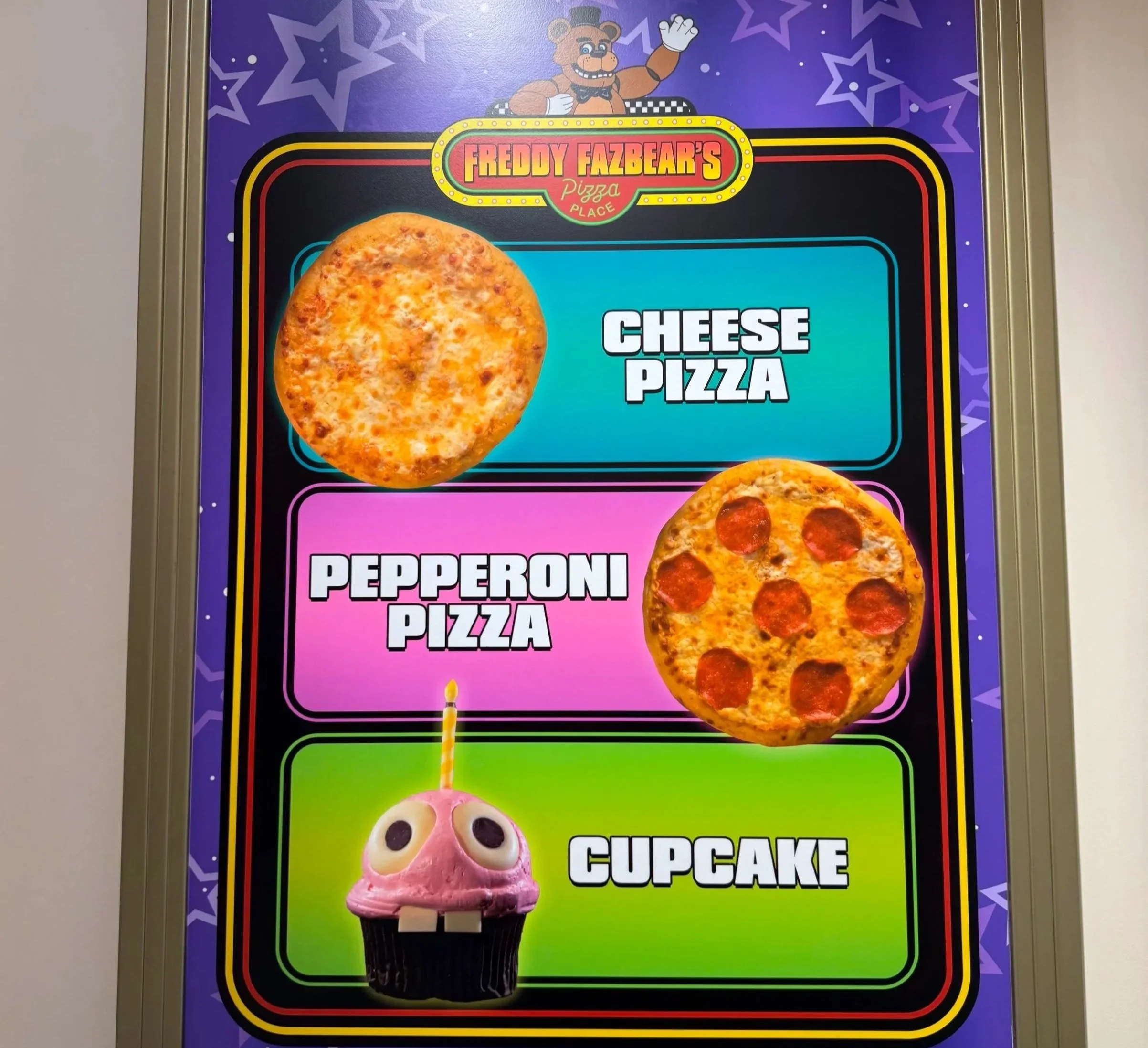 Freddy Fazbear Pizza – classic cheese pizza or cheese pizza topped with tasty pepperoni