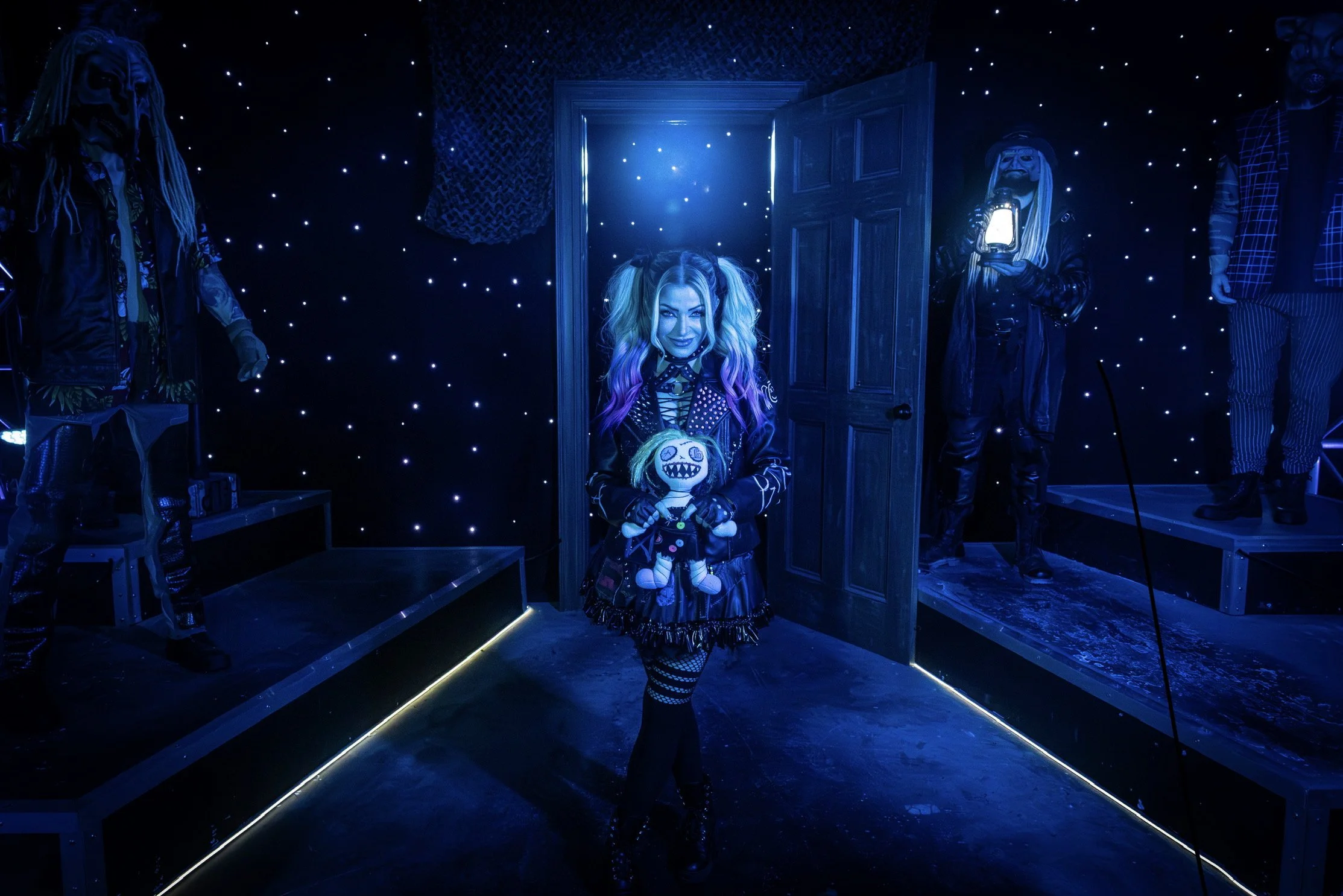 WWE superstar Alexa Bliss recently dropped into Universal Orlando’s Halloween Horror Nights to give guests a scary-good surprise by reprising her character and becoming a scareactor in the “WWE Presents: The Horrors of the Wyatt Sicks” haunted house.