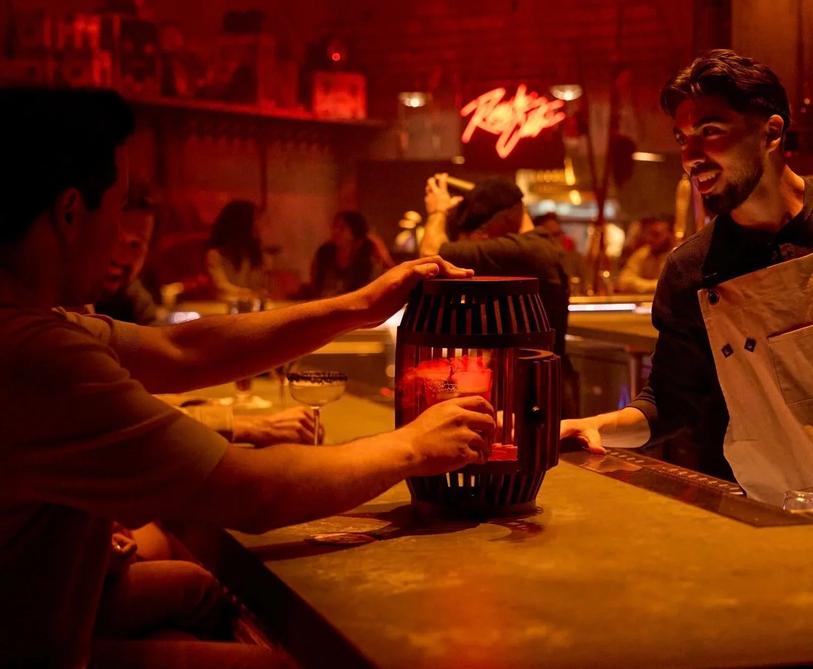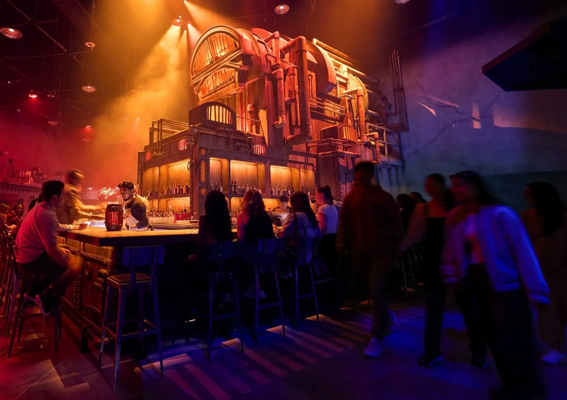 The Boiler Bar at Universal Horror Unleashed is equal parts hellish spectacle and welcome reprieve with a monstrous flaming machine nestled in the heart of the venue.