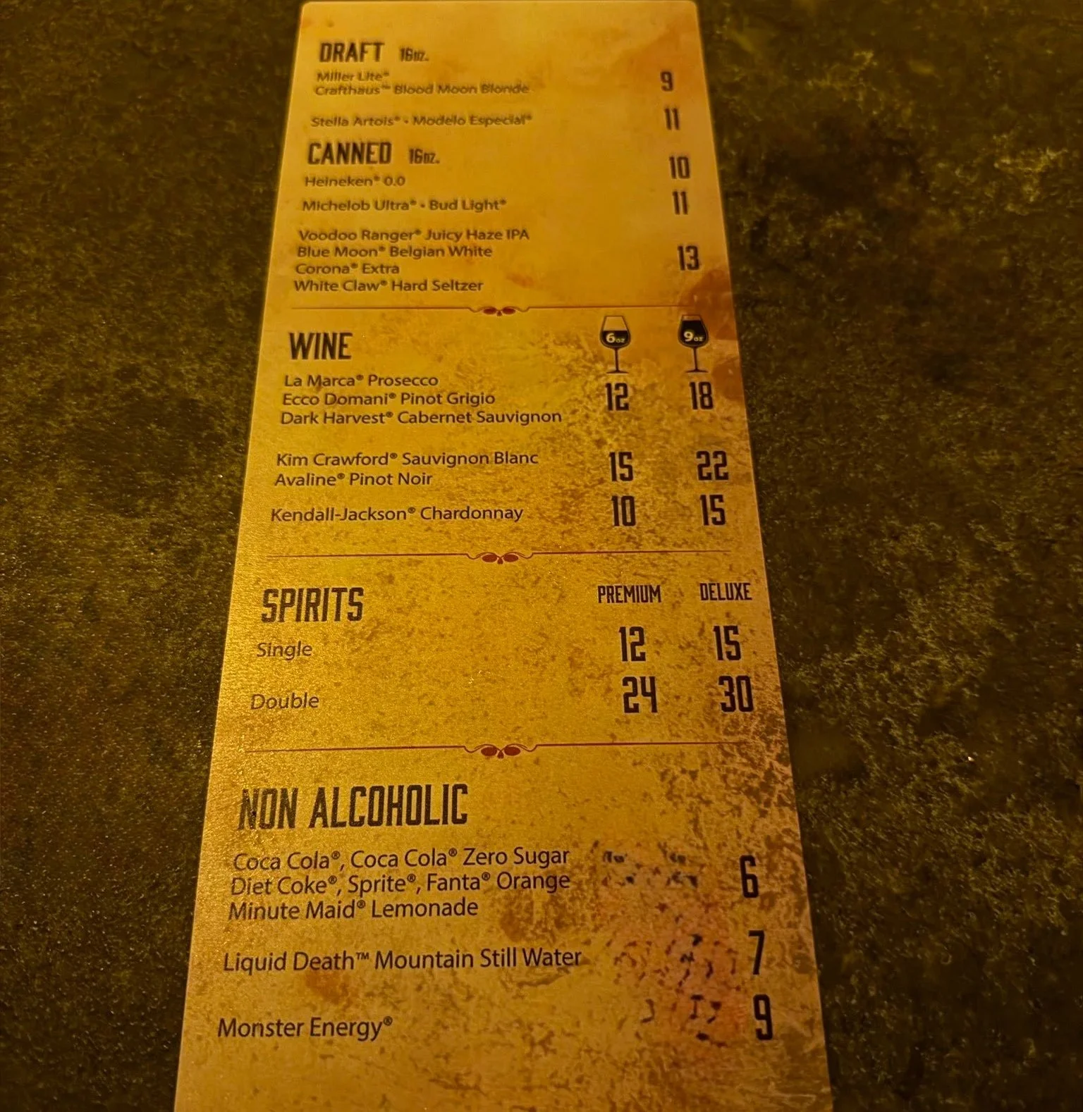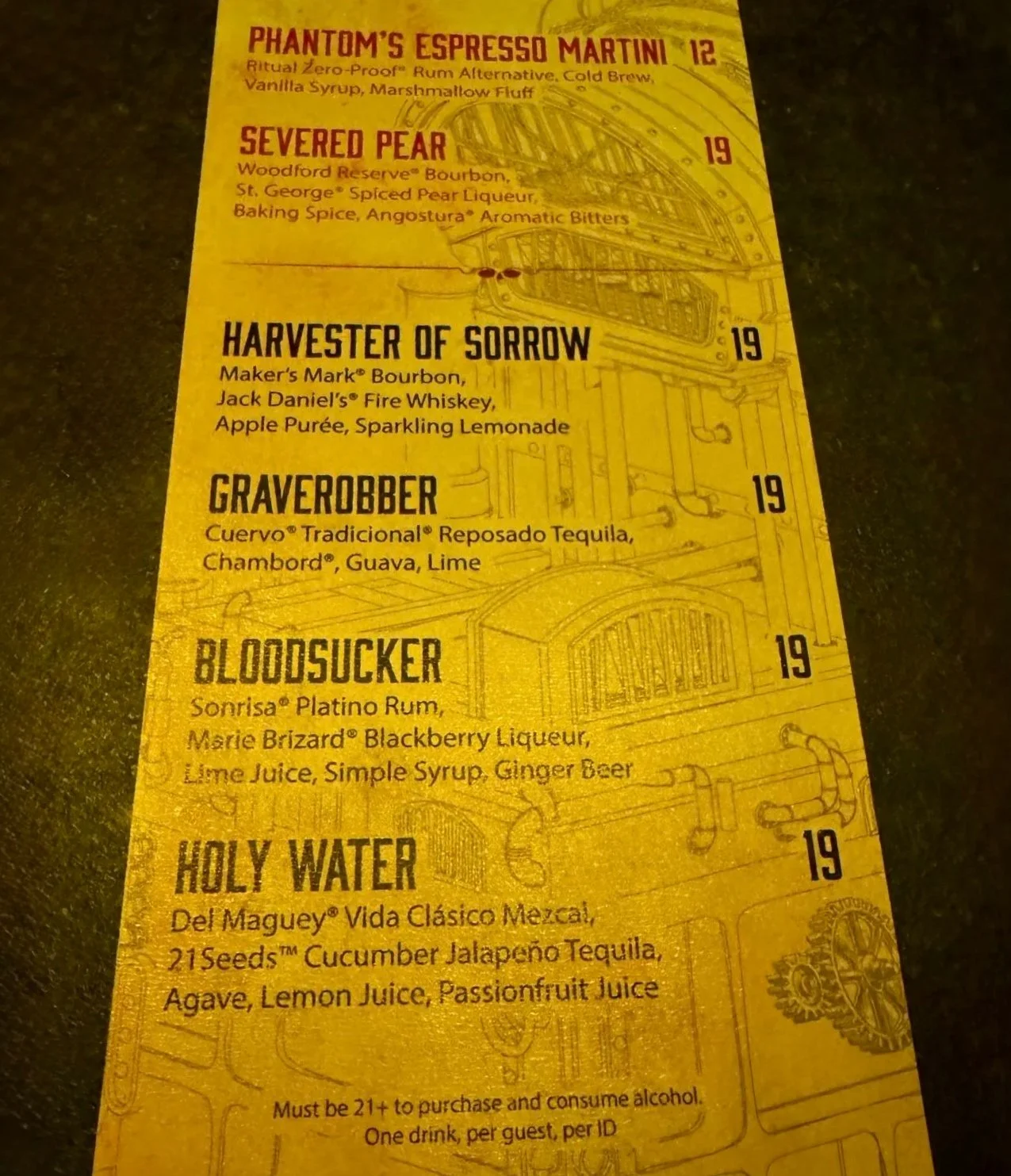 Full Menu and Prices for The Boiler at Universal Horror Unleashed in Las Vegas