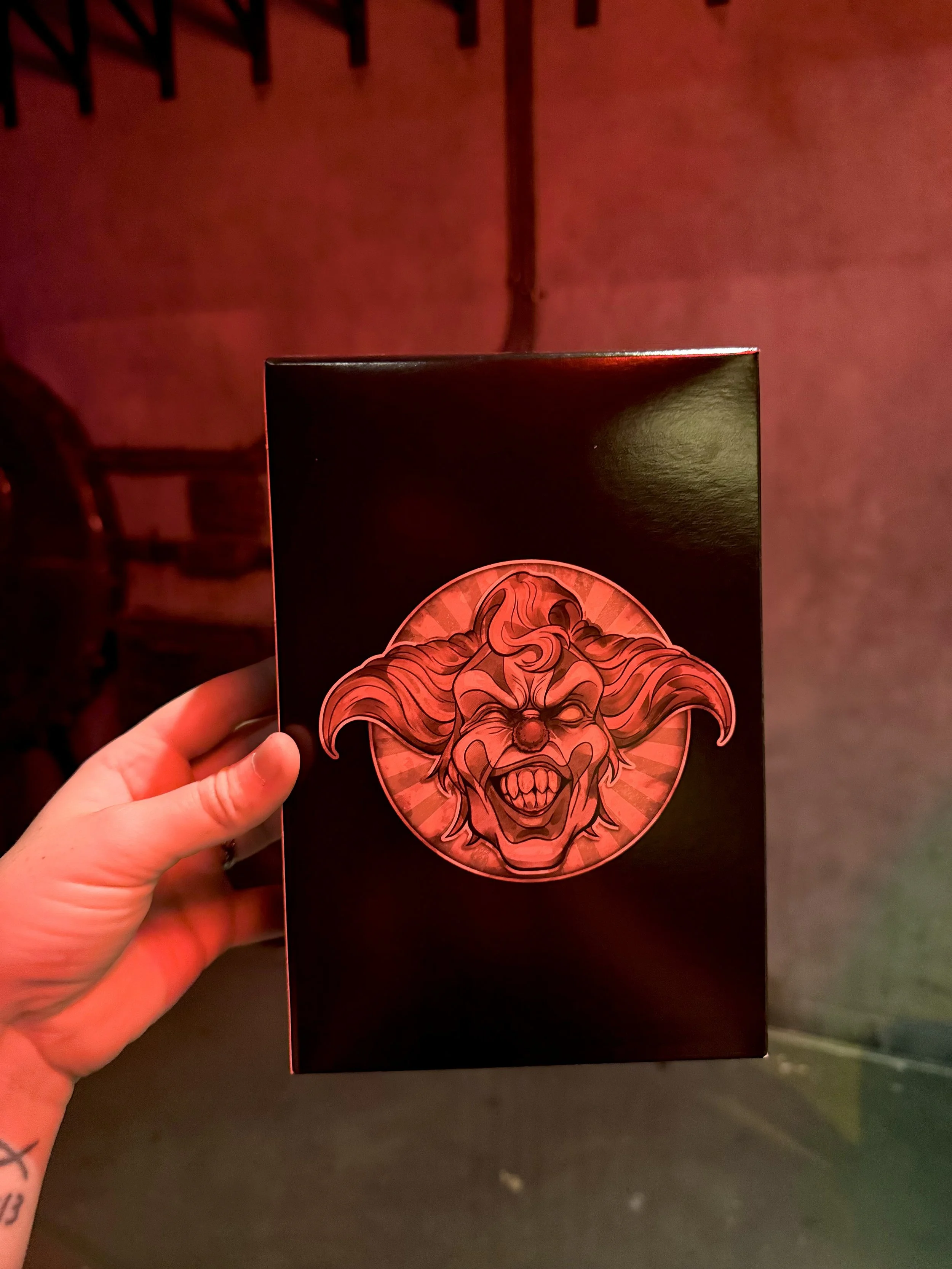 Rough Cuts is one of the 2 main food locations inside Universal Horror Unleashed. Here, you order quick-service style, and there's a few places to sit or stand while you snack. This is where you can buy the popcorn box with Jack the Clown’s face on it.