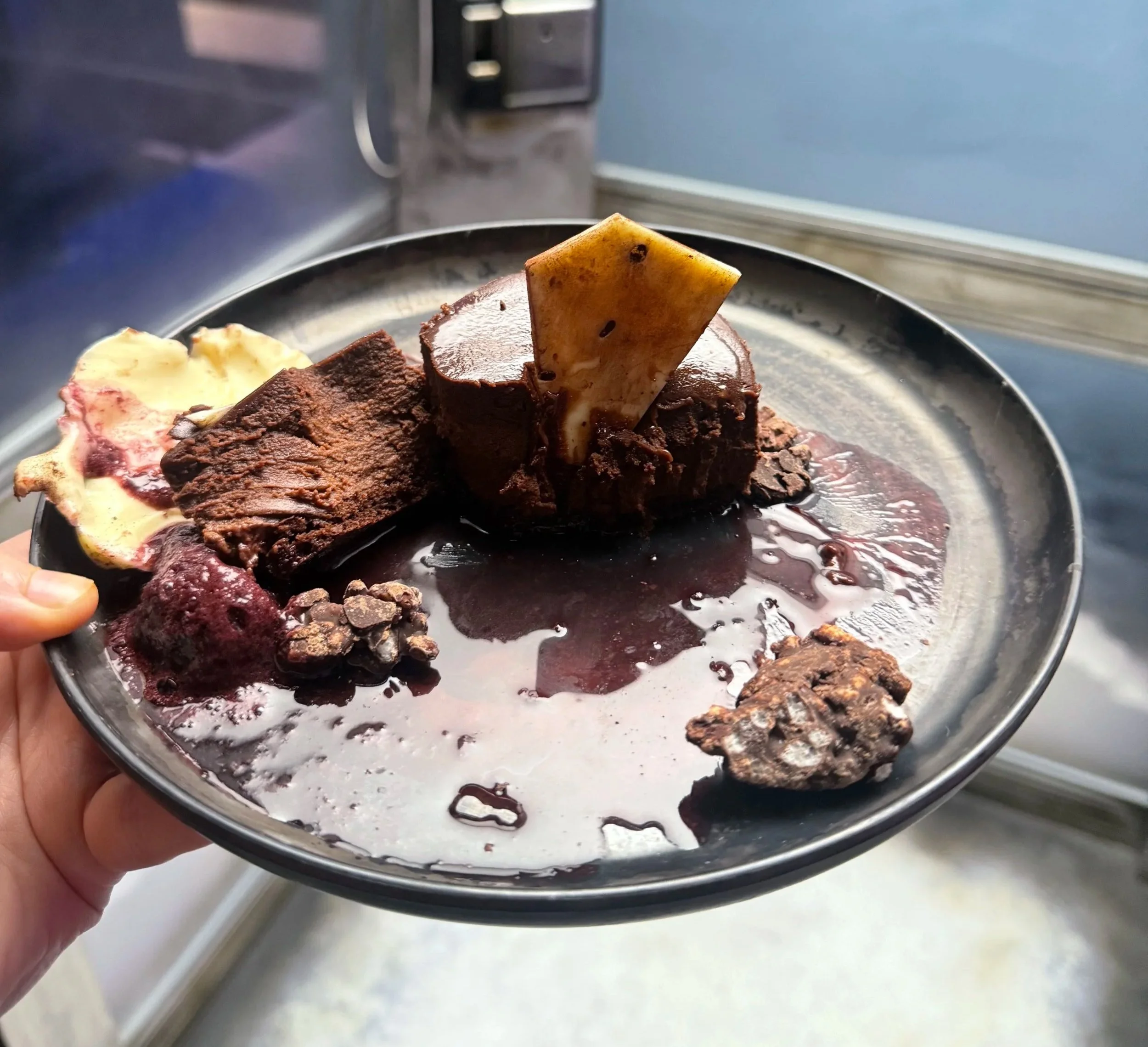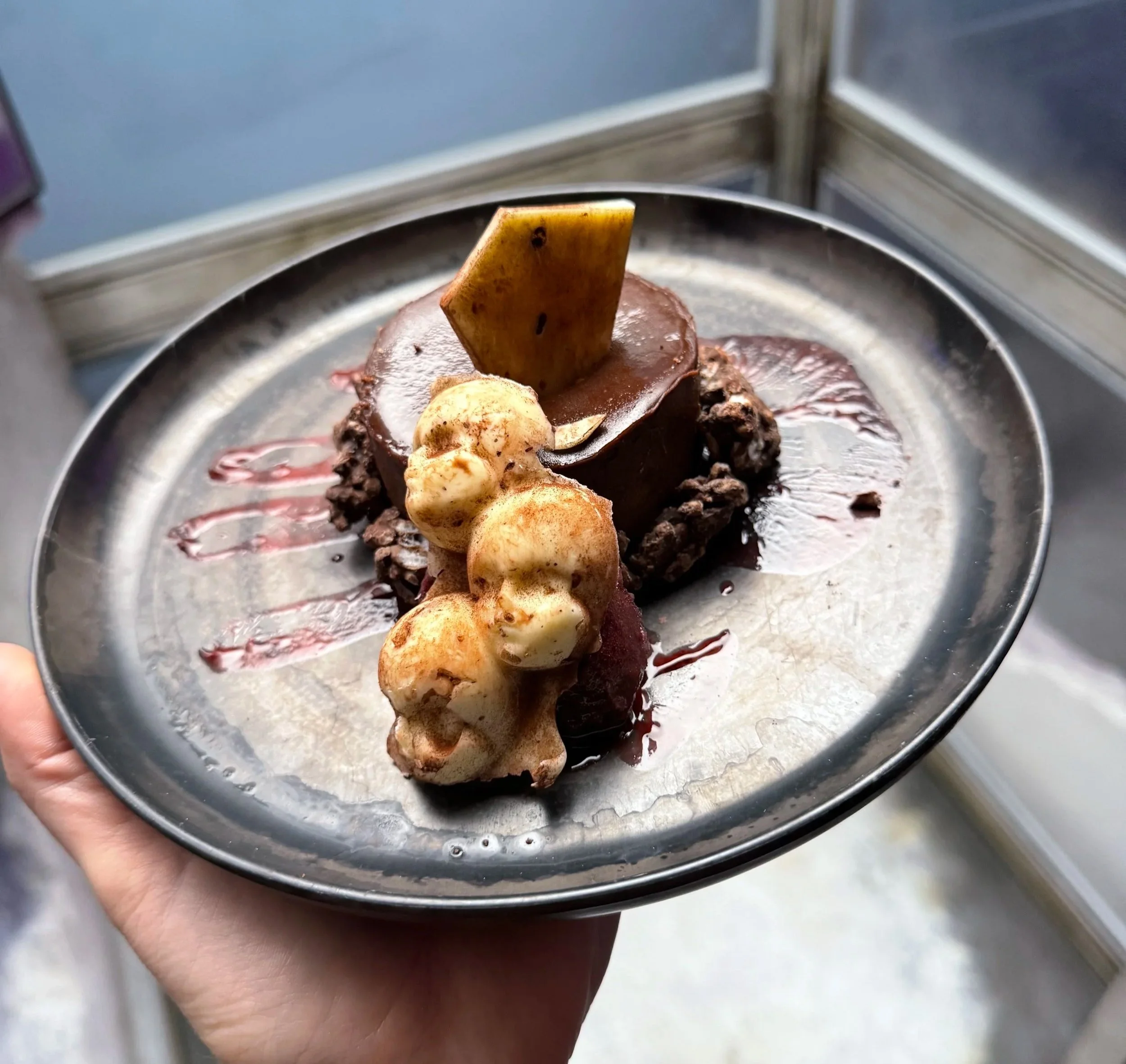 The cookie and meringue were very good. extremely sweet and super delicious! It doesn’t really need the raspberry sorbet, but I can appreciate it looking way cooler with it on the plate. 8.5/10