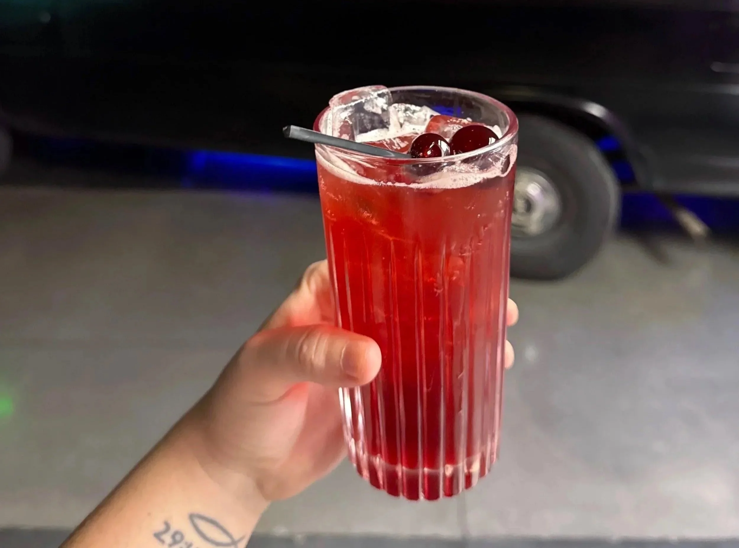 Ritual Zero Proof Tequila Alternative, Cherry, Cranberry, Raspberry, Lemon, Grenadine, and Club Soda