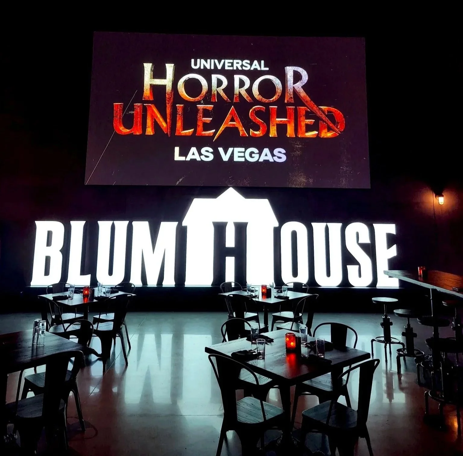 Premiere House is the main dinning location at Universal Horror Unleashed, and it’s themed to Blumhouse. It’s considered a tapas bar featuring the horrors of Blumhouse and serving a variety of signature cocktails and a selection of delicious shareable bites set amid an eerie atmosphere filled with movie props and twisted décor representing some of Universal’s most recent Blumhouse horror films.