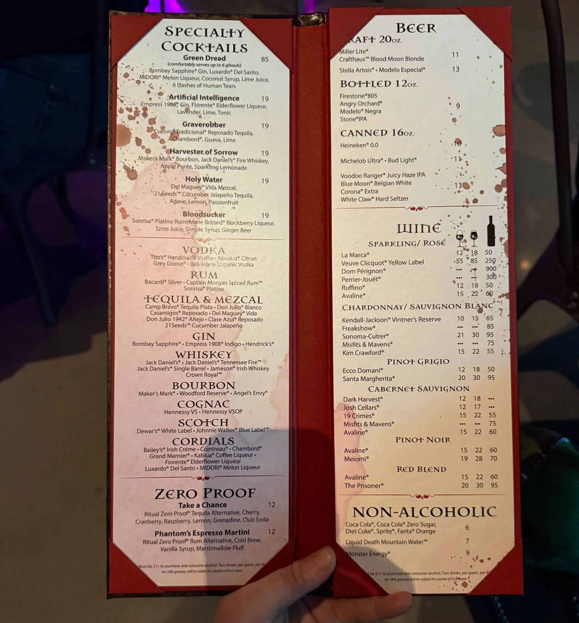 Premiere House at Universal Horror Unleashed – Las Vegas: Full Menu and Prices
