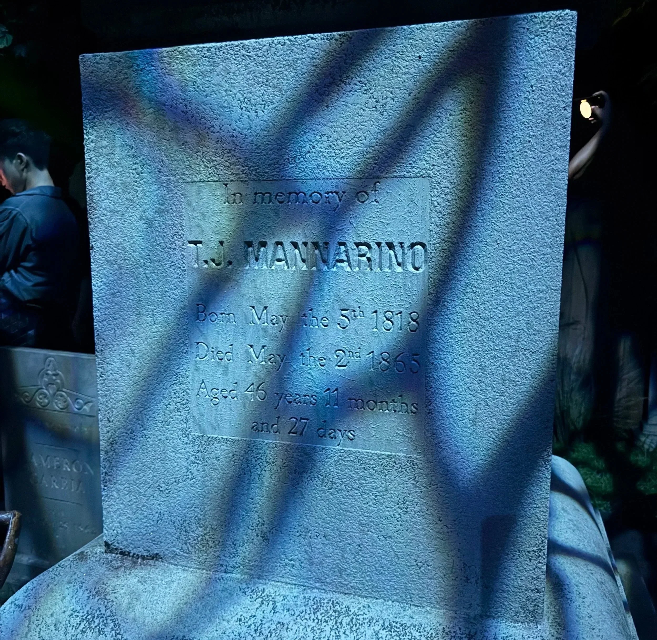 Inside the queue of the Texas Chainsaw Massacre House, you can find the TJ Mannarino on one of the headstones. He’s the VP of entertainment art & design at Universal Horror Unleashed.
