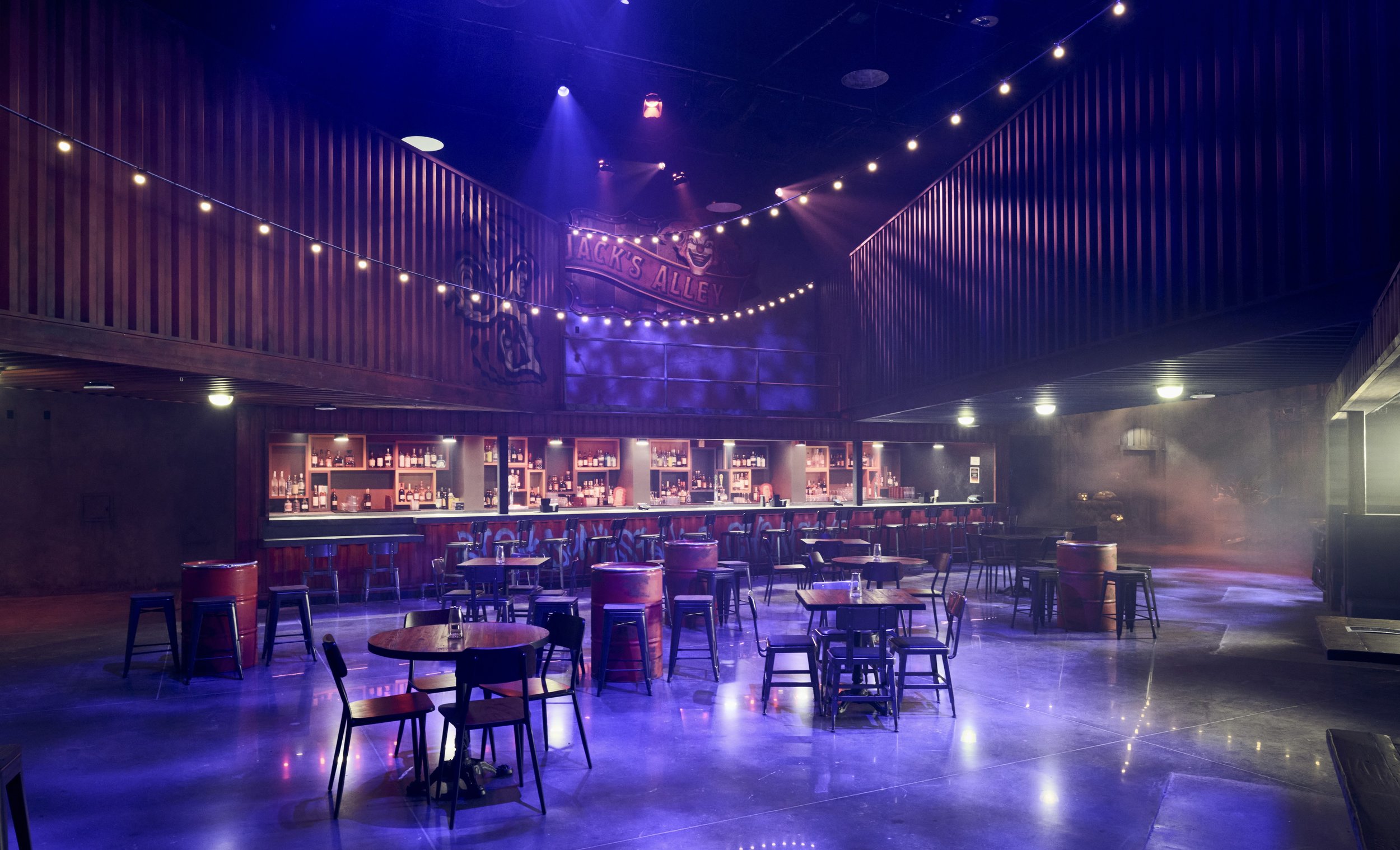 Jack’s Alley Bar Is located in the back of Universal Horror Unleashed right next to Scarecrow: The Reaping haunted house. This bar serves themed specialty cocktails and drinks only. Here, you can enjoy acrobatic performances and more in a circus-like hellscape where the Jack the Clown and Chance reign.Jack’s Alley Bar also features live entertainment by the iconic Jack the Clown and Chance.